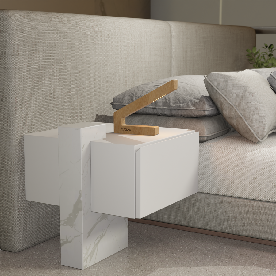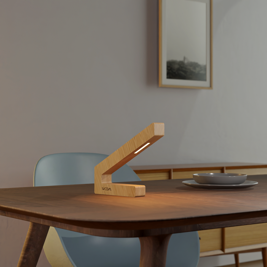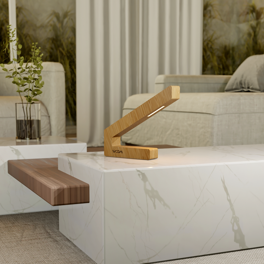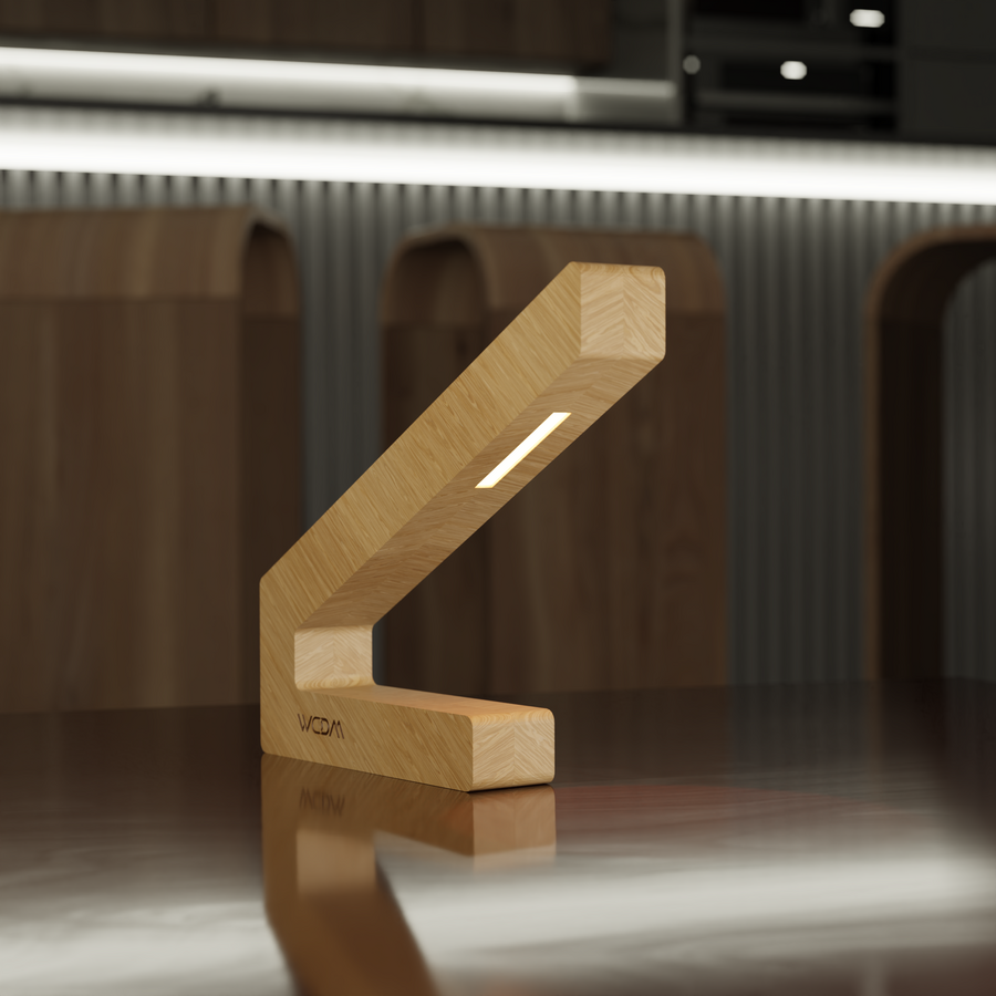 Each lamp is carefully shaped from sustainably sourced oak, ensuring durability and a unique natural wood grain. Its ergonomic, angled form not only enhances lighting but also serves as a conversation-worthy design piece.