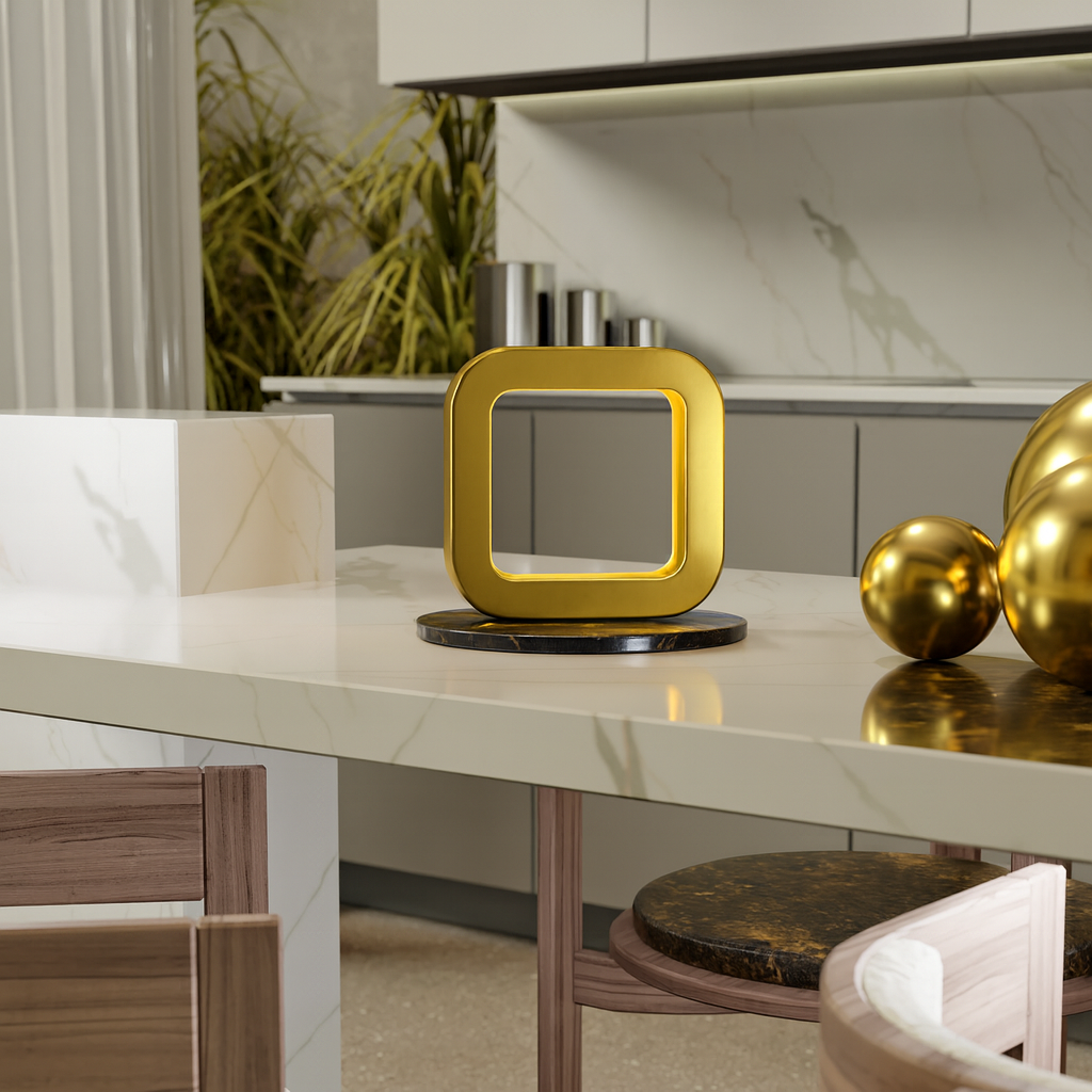 The Handcrafted Gold Finish Oak Rotatable Square Lamp is a perfect fusion of contemporary style and traditional craftsmanship. Made from high-quality Gold Finish Oak wood, this rotatable lamp features a square silhouette with rounded corners and a hollow center that highlights its unique rotatable geometric design with radiant gold finish.