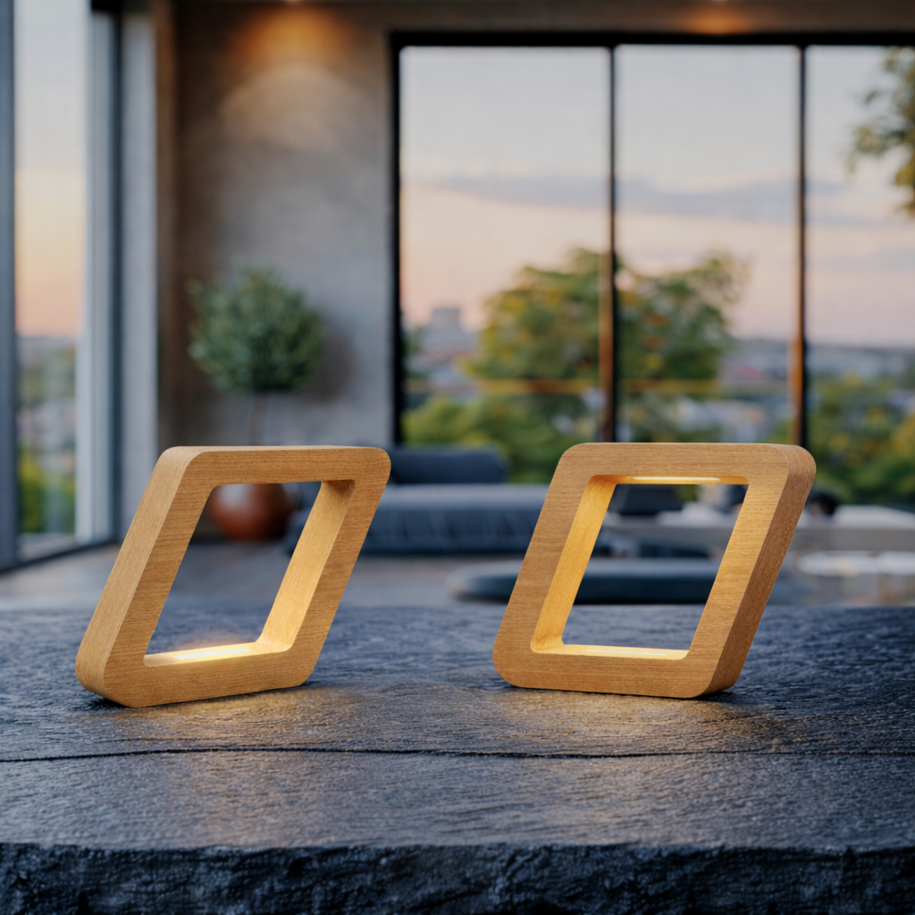 This modern rotatable wooden LED lamp is designed to bring a sense of sophistication and calm to any space. Whether placed on a bedside table, living room shelf, or office desk, its striking rotatable square form adds a touch of architectural elegance. The ambient light makes it ideal for creating cozy atmospheres while serving as a stylish decorative piece.