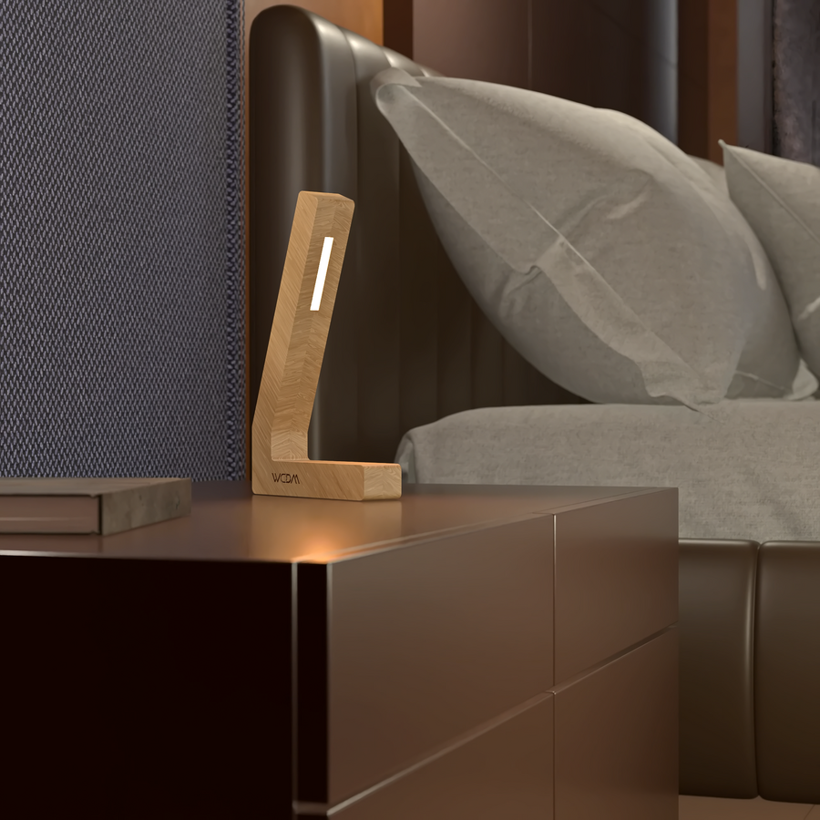 Handcrafted Oak L-Shaped LED Lamp – Minimalist Desk Light
