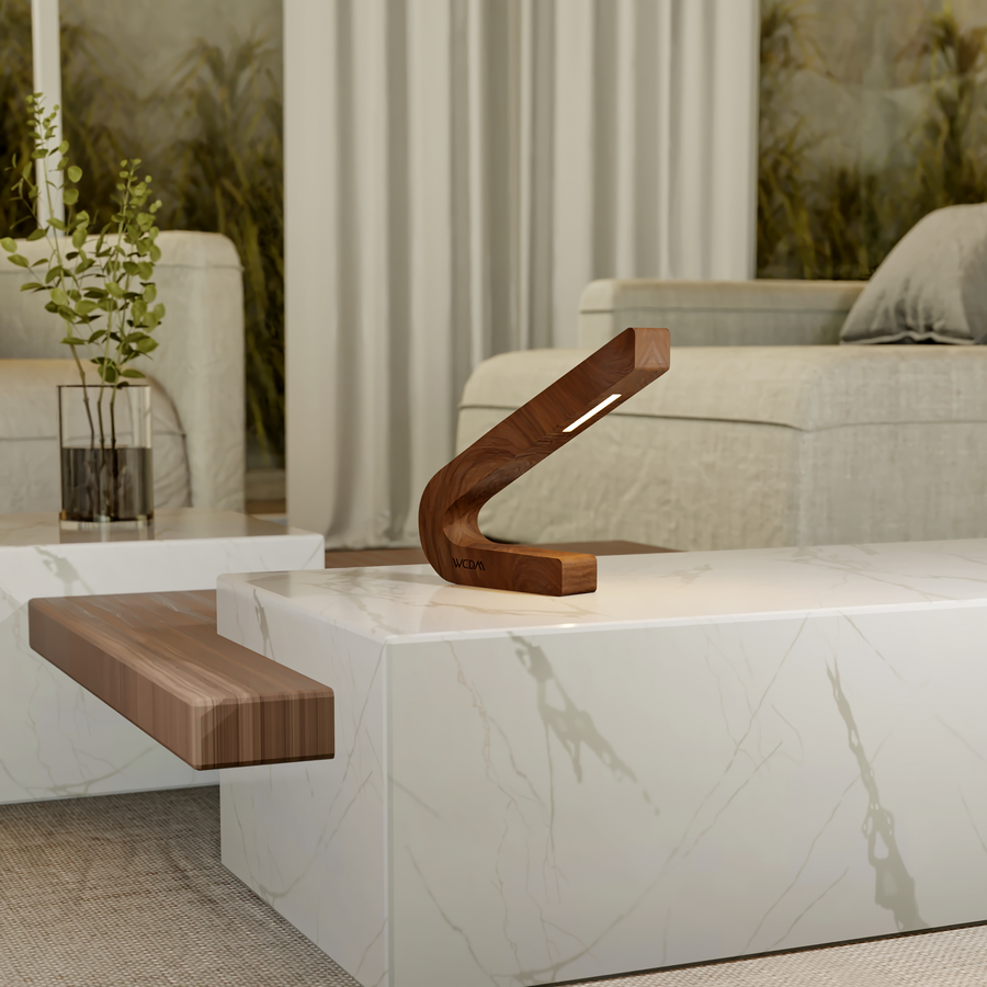 The Handcrafted Walnut Curved Wooden LED Lamp combines modern minimalism with the timeless beauty of natural walnut wood. Its distinctive curved structure gives it a sculptural presence, making it a statement piece for your interior décor. The built-in LED strip casts a soft, warm light, creating a cozy and inviting atmosphere.