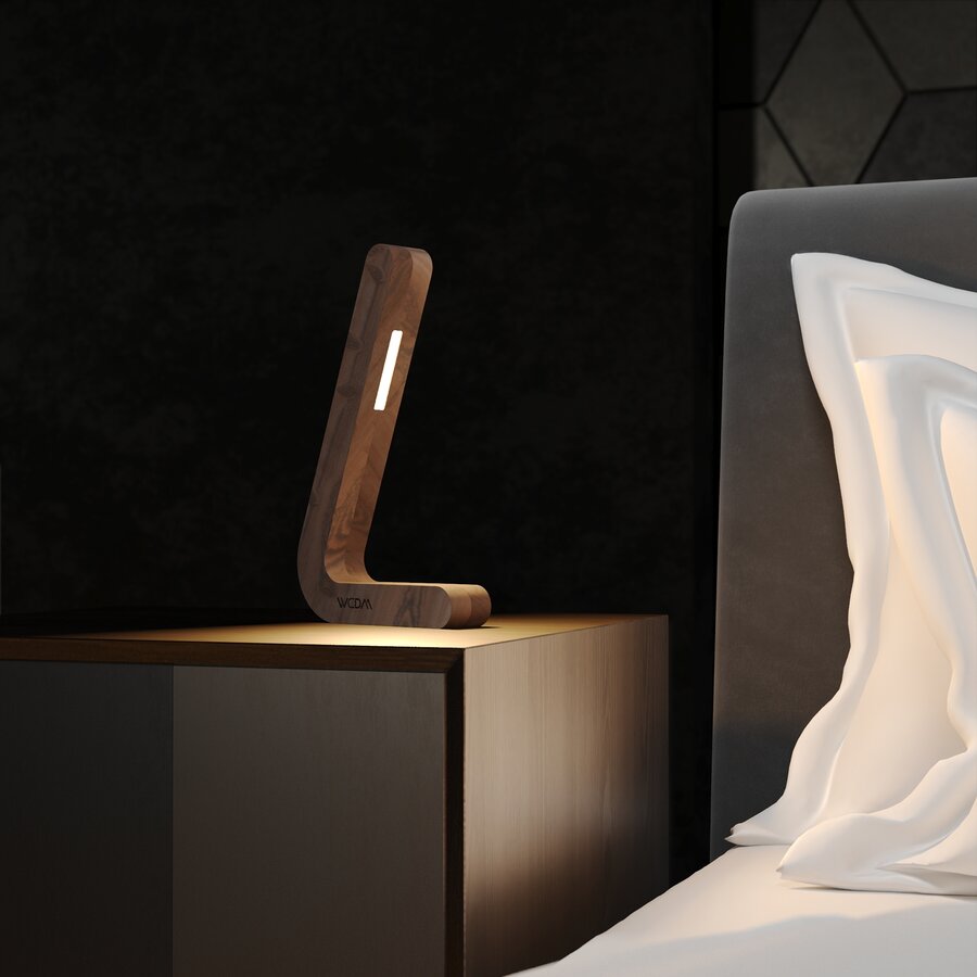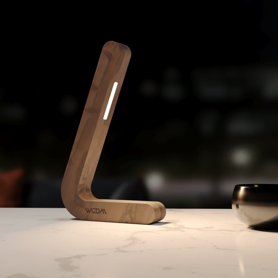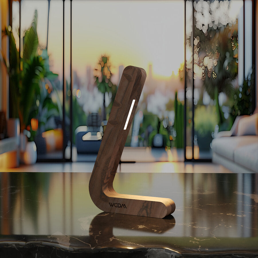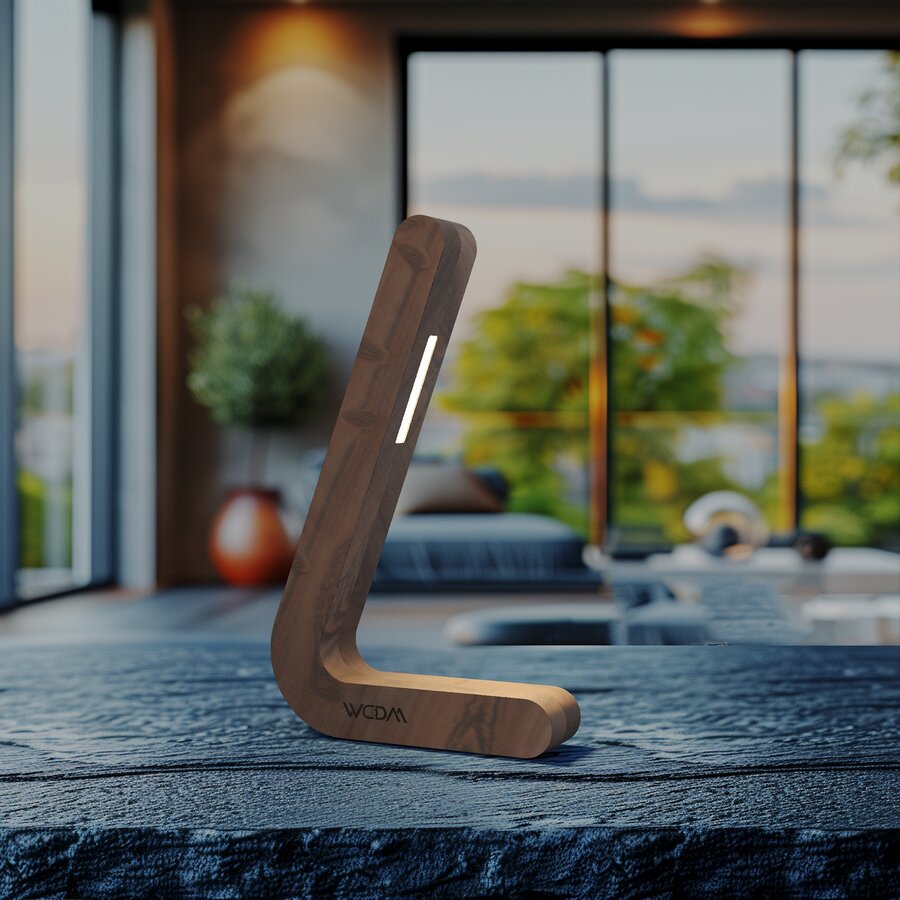 Handcrafted Walnut L-shaped Wireless Wooden Lamp