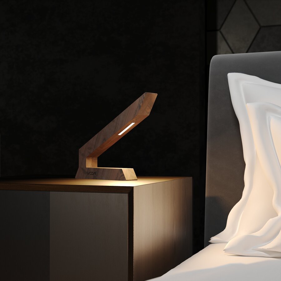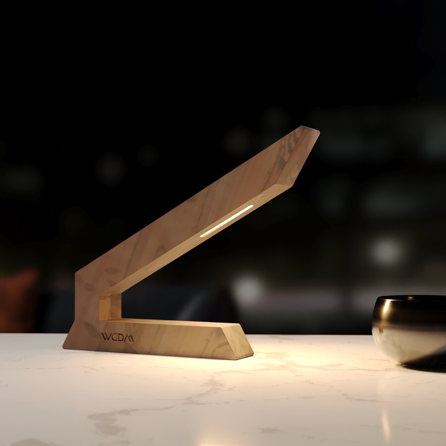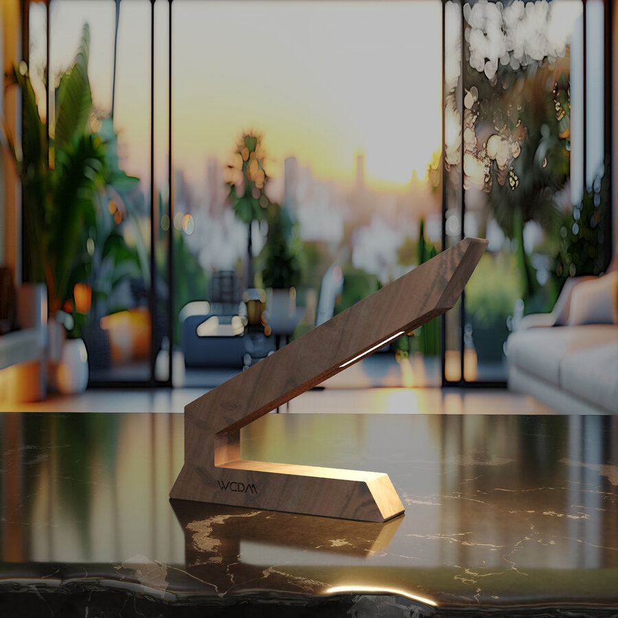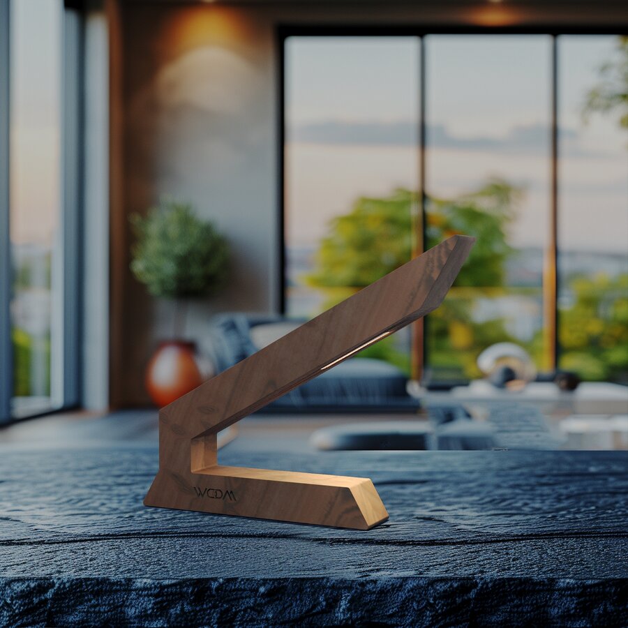 This handcrafted walnut LED Table lamp is a modern wooden design that blends artistry with functionality. Its sleek, angular shape, combined with the rich tones of walnut wood, creates a bold statement piece for any desk, bedside table, or living space.