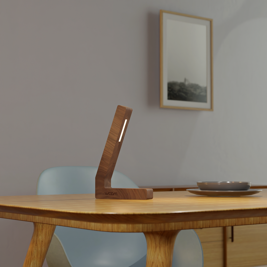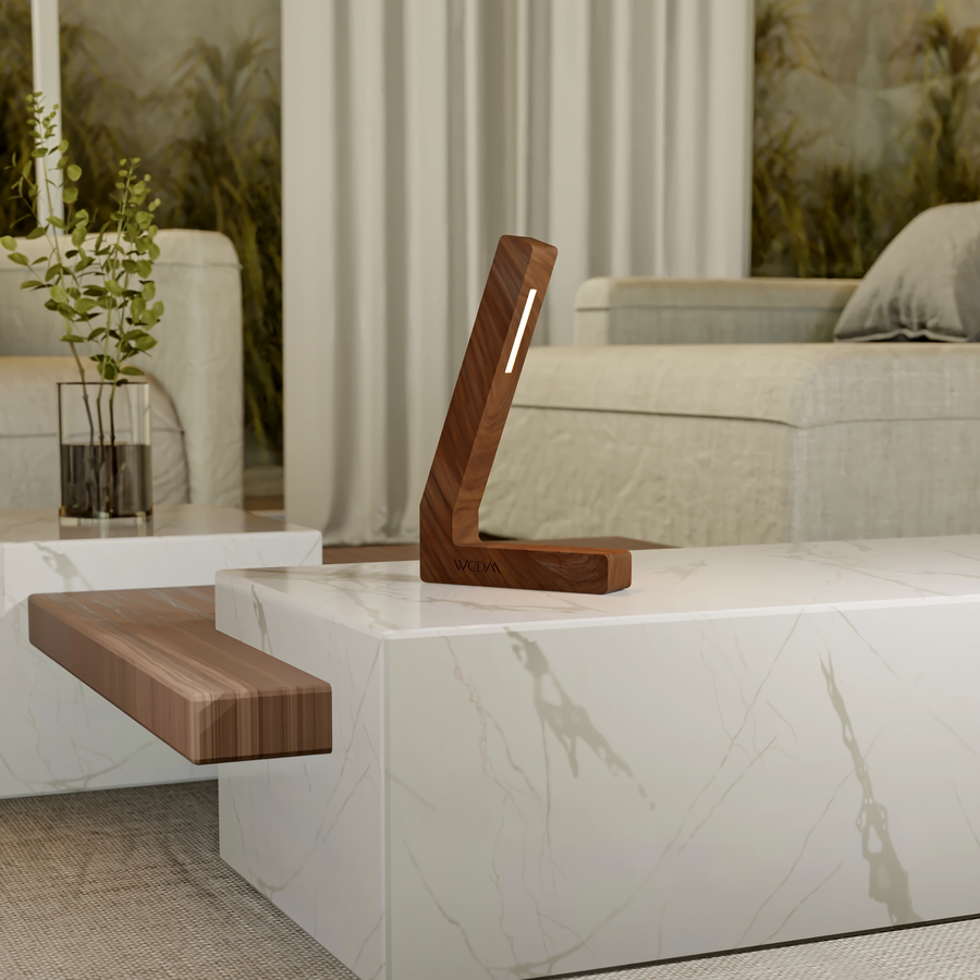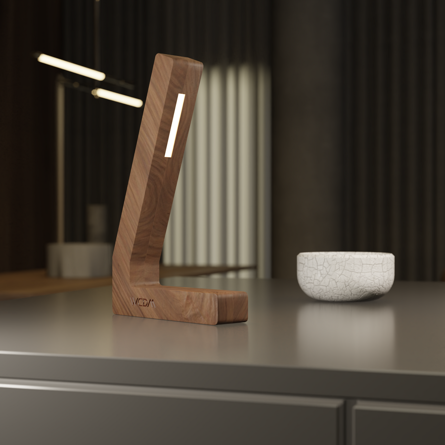 The Handcrafted Walnut L-Shaped Lamp is a stunning example of natural craftsmanship combined with sleek, modern design. Carved from premium walnut wood, this lamp features a tall, upright L-shape with an integrated LED strip, offering both functional illumination and a refined aesthetic.