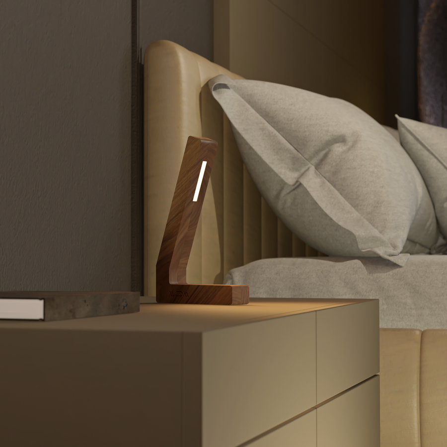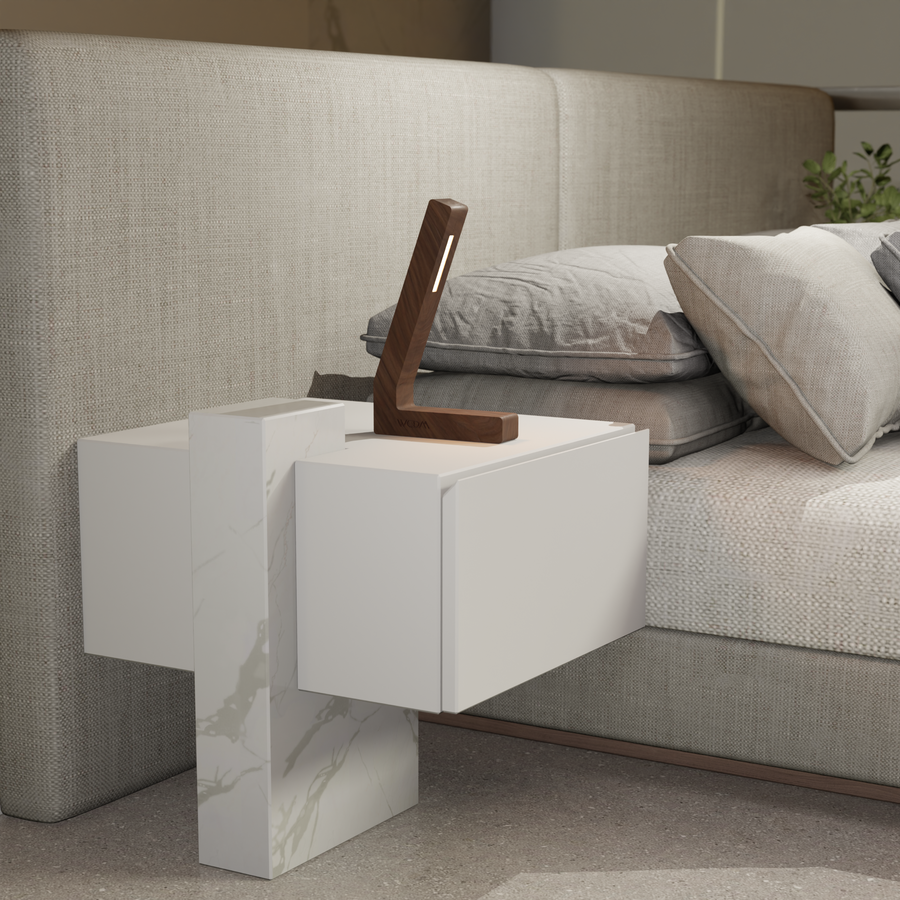 Walnut L- Shaped Lamp – Handcrafted Wooden Bedside Light